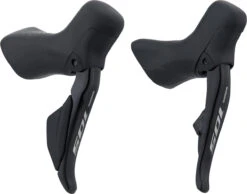 Les leviers de frein / de vitesses 105 ST-R7170 Di2 ont des cornes prolongées vers le haut, ce qui permet une prise en main très ergonomique. De plus, tu peux facilement adapter la portée à la taille de ta main à l’aide d’une clef hexagonale de 2 mm. Grâce à la zone de freinage agrandie et à l’action sensible du levier, tu as un contrôle total sur toutes les opérations de freinage, le point de pression étant également réglable. Malgré tout cela, les leviers de frein / de vitesses ne pèsent qu’environ 30 grammes de plus par paire que le modèle Ultegra. Bien entendu, comme pour les modèles Dura-Ace et Ultegra, ce set de freins est doté de la plateforme Di2 entièrement retravaillée. Cela signifie que le ST-R7170 communique avec le dérailleur arrière via un protocole sans fil, le dérailleur arrière est à son tour relié par câble à la batterie et indirectement au dérailleur avant. Cela ne signifie pas seulement des changements de vitesse ultrarapides et ultraprécis sur simple pression d’un bouton. En renonçant aux câbles sur le tableau de bord, ton vélo a un look plus ordonné, l’installation est plus facile et le dérailleur est insensible à la saleté à cet endroit. Les STI sont alimentés par des piles boutons qui durent plusieurs années et que tu peux remplacer toi-même si nécessaire. Les leviers de frein sont fabriqués en aluminium léger, les corps des poignées de matériau synthétique durable.